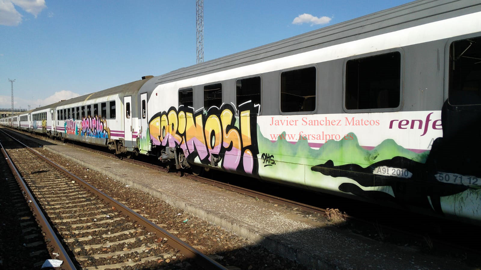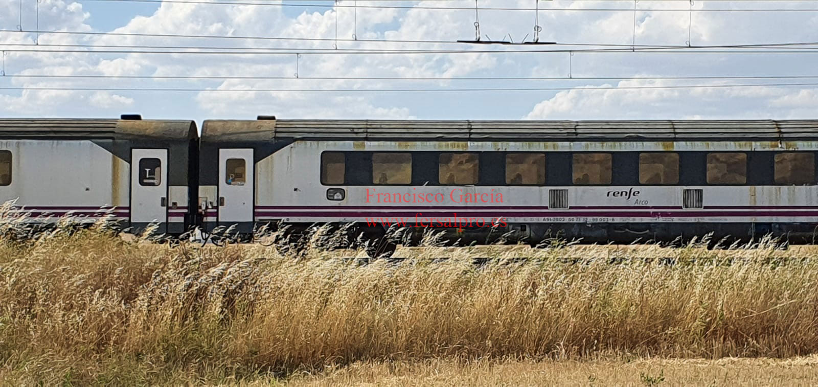 Esta composición más corta que la anterior, estaba compuesto por 15 coches de diversas clases. En lo que se refiere a los coches Arcos,  en esta ocasión  entre ellos solo se encontraban 4 de ellos. La locomotora titular fue la 333.344.0 que  habiendo  pasado  recientemente la “R” en Junio del presente año, y aunque iba impoluta y limpia de pintura, ya había recibido   por un lateral de la misma, la visita  de los grafiteros.  Los coches Arcos  transportados en esta ocasión eran: