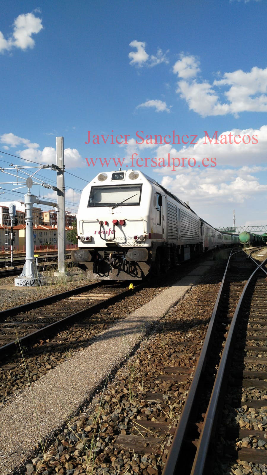 El tren apunto de entrar en la estación de Salamanca para pasar la noche. Al día siguiente salio a Portugal.
